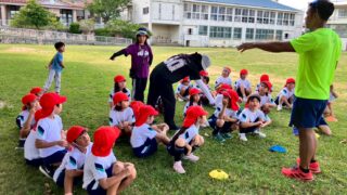 走りながら、走りやすいフォームを子供達が見つけられる練習方法です。